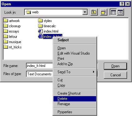 dialog boxes for renaming files, deleting, and copying files,